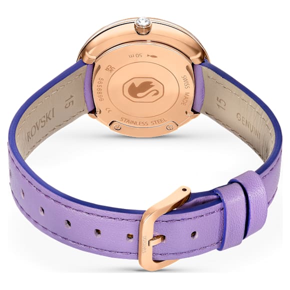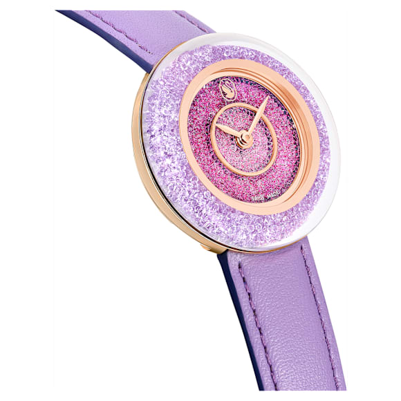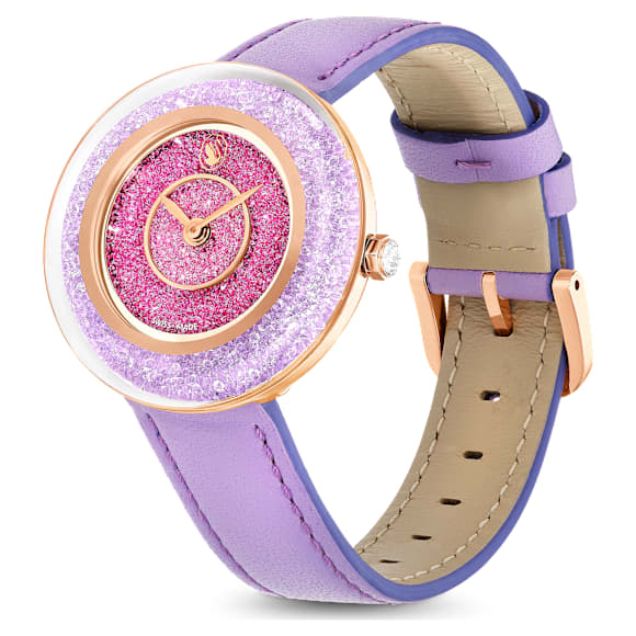 With its playful colorway, this striking watch will brighten every hour of your day. The 33mm case is made in stainless steel with radiant rose gold-tone detailing. Beneath the domed sapphire glass, the dial is enriched with around 3,460 crystals in shades of pink and violet, while the iconic Swarovski swan logo is placed at 12 o’clock. An additional crystal...