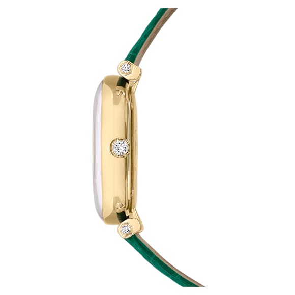 This spellbinding timepiece wonderfully captures the dazzling spirit of the Crystalline family. Crafted with a gold-tone finish, the 35mm case features cleverly shaped attachments with a single clear stone in each end, along with another stone placed in the crown. Under the domed glass, the watch’s dial is beautifully embellished with Arabic numerals and approximately 1000 crystals for an astonishing...