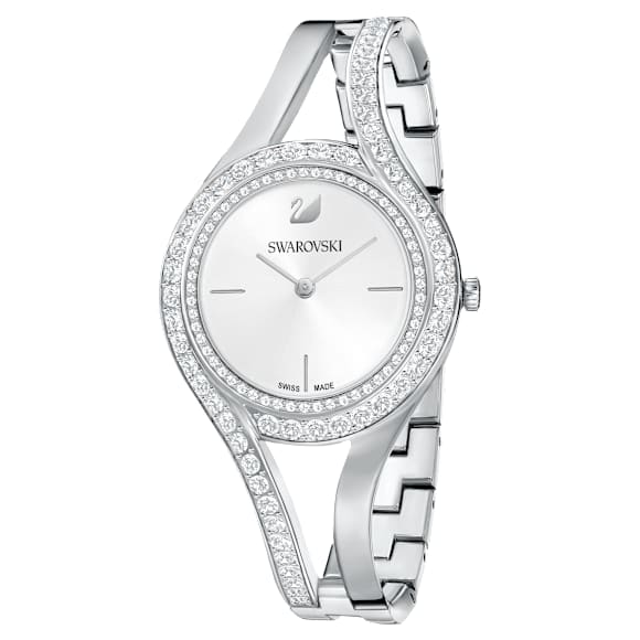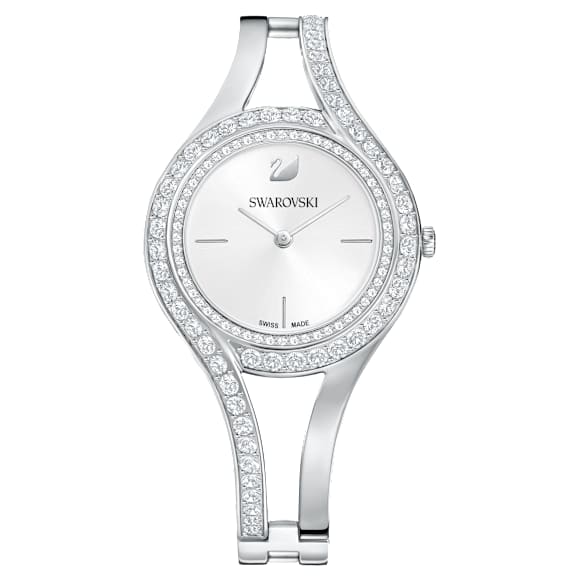 Elevate your summer style with this fluid and modern watch. Featuring two pavé lines on the bezel and asymmetric cutouts, it’s a fresh take on classic sparkle. The stainless steel case and bracelet perfectly complement the 112 clear crystals, and the white silver-tone sunray dial. Whatever the occasion, it will add contemporary edge to timeless styling. The bracelet length can...