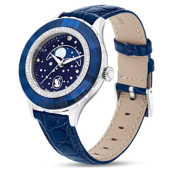In tribute to the 55th anniversary of the first moon landing, this Octea Moon watch exquisitely links the passage of time with the lunar cycle. The 37mm stainless steel case is mounted with a faceted bezel in blue crystal, along with an inner ring of shimmering pavé. This frames the dark blue dial, which is majestically decorated with 11 round-cut...