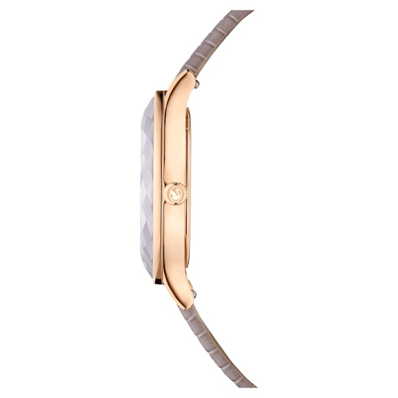 It’s the contemporary but casual colorway that makes this 33 mm watch so special. On the front, the intricate bezel and face is crafted from a single piece of sapphire crystal with 72 facets, while the taupe guilloche dial includes crystals for index markers and a graceful swan motif at 12 o’clock. This unique Swiss Made watch is water-resistant to...