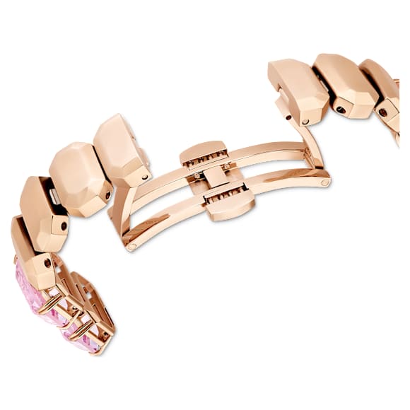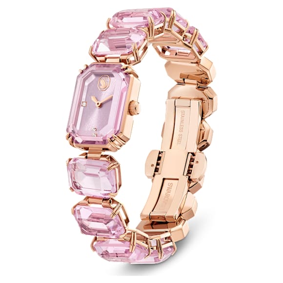 Inspired by the Millenia family, this eye-catching bracelet offers color pop appeal. Expertly crafted from a row of octagon-cut crystals in a vibrant pink hue, it features a sapphire glass centerpiece and a rose gold-tone finish. It is water resistant to 50m. A playful choice for solo styling or layering.