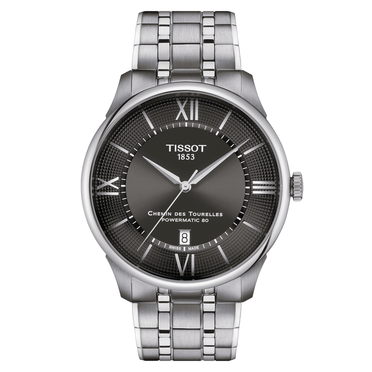 Close your eyes and think of a pure Swiss watch and you’ll see the Chemin des Tourelles. Named after the street that leads to Tissot's home in the Swiss mountains, it’s Tissot’s icon: round, classic, mechanical, ageless. Now updated and refined, this edition has a gently domed sapphire crystal that sits over a soft-sunray dial with simple, elegant baton hour...