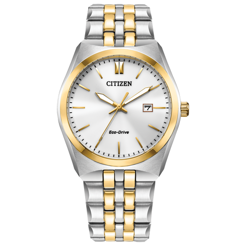 A classic timepiece is always in style in the Corso men’s watch from Citizen. Featuring a two-tone gold and silver-tone stainless steel bracelet and case with a 3-hand white dial and date indicator, luminous hands and gold-tone markers, this elegant timepiece also features a fold-over clasp closure with hidden push buttons and is water resistant to 100 meters. If you’re...