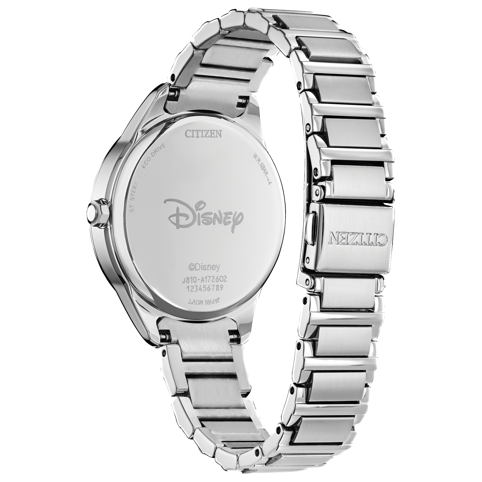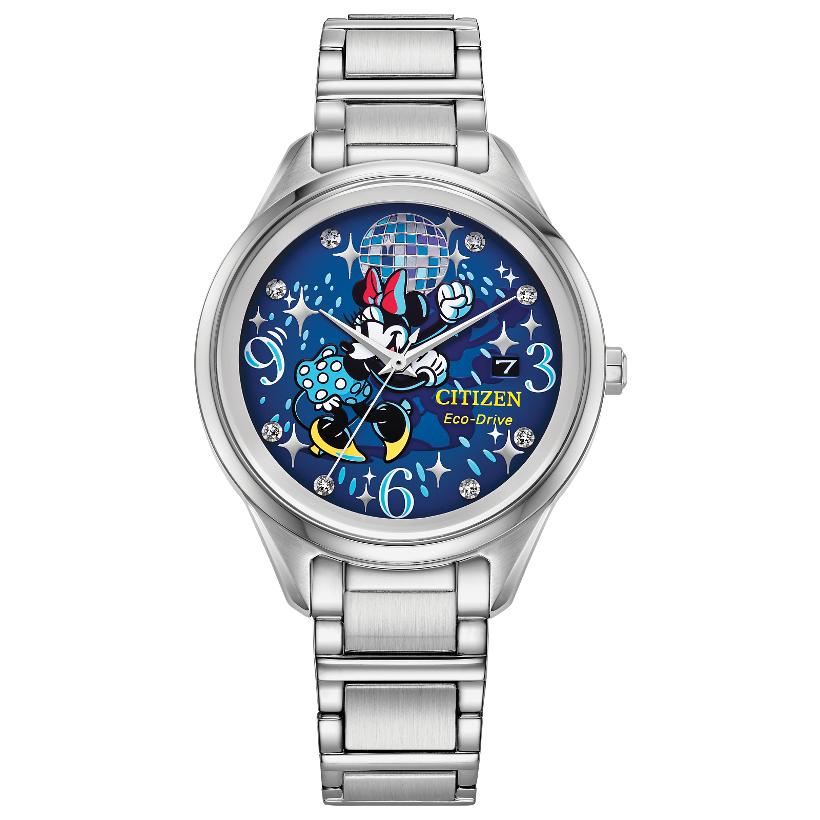 Put on your boogie shoes and hit the dance floor with the new Disco Minnie women’s watch from Citizen’s Disney Mickey Mouse collection. The blue 3-hand dial with date features exclusive artwork by character designer and illustrator Jeff Shelly depicting Minnie cutting loose on the dance floor as she bumps the 9 marker and under a twinkling disco ball. Crystal...