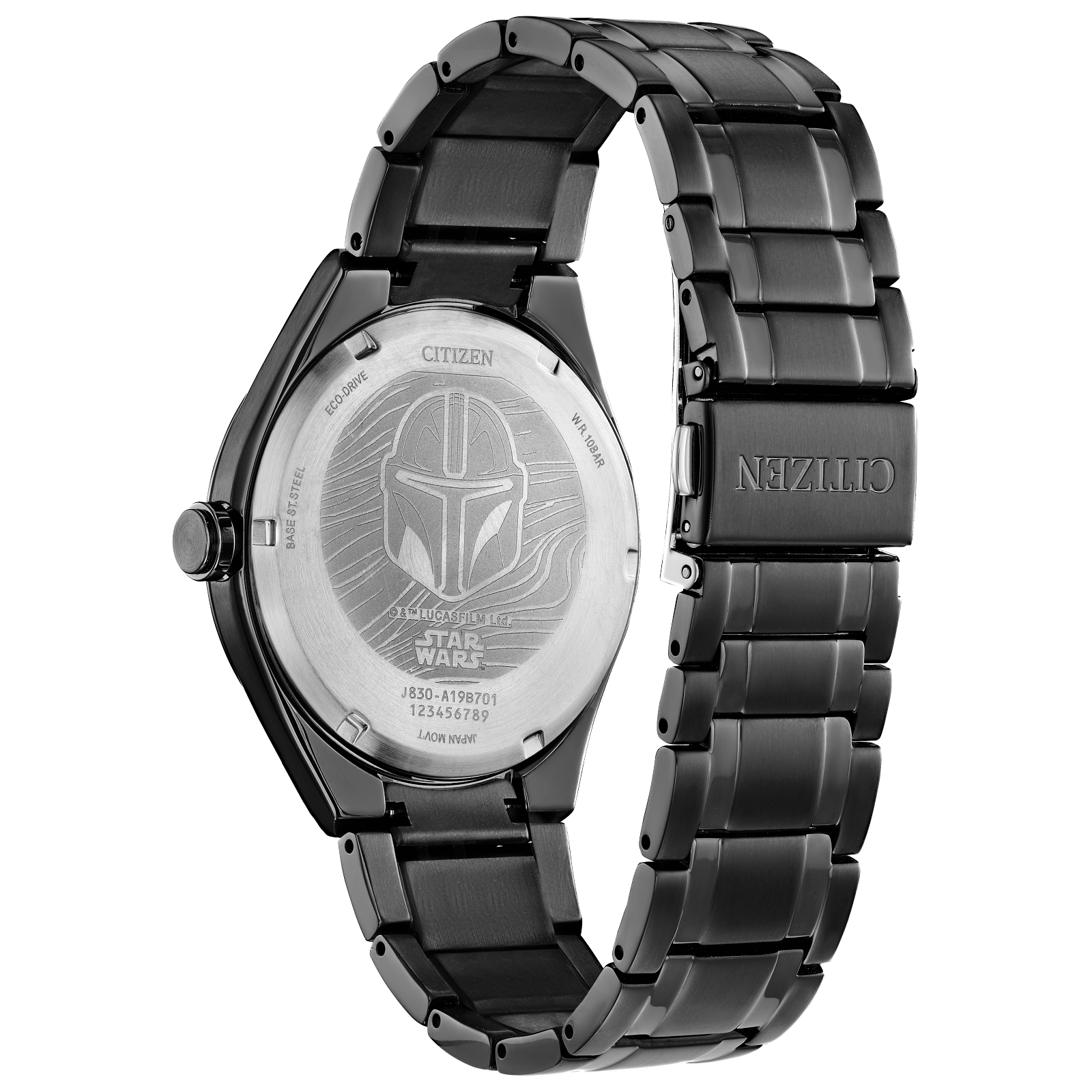 Carry the strength and honor of the Mandalorian™ bounty hunter through the outer reaches of your galaxy with this unique timepiece from Citizen’s Star Wars™ collection. Sustainably powered by any light, this Eco-Drive watch features a dial emblazoned with the Mandalorian’s Mudhorn™ signet in the center, and a saber texture design that washes over the 3-hand dial. Luminous hands and...