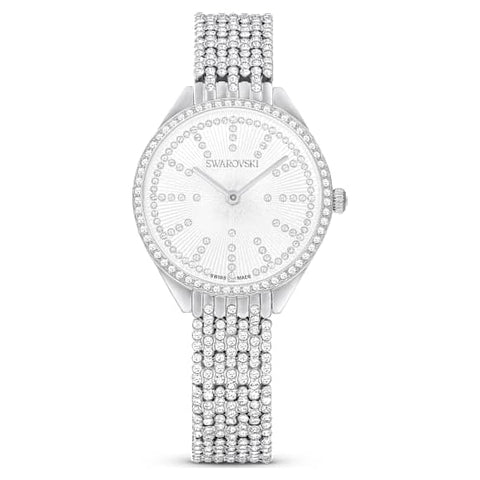 The simplicity of stainless steel has been beautifully lifted in this Swiss Made timepiece thanks to the compelling use of 433 crystals. On the silver tone guilloche dial, you’ll discover crystals for index markers, while the slender bezel and bracelet are each adorned with their own pavé of dazzling clear crystals. The 30mm watch is water-resistant to 50m and includes...