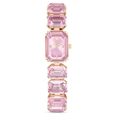 Inspired by the Millenia family, this eye-catching bracelet offers color pop appeal. Expertly crafted from a row of octagon-cut crystals in a vibrant pink hue, it features a sapphire glass centerpiece and a rose gold-tone finish. It is water resistant to 50m. A playful choice for solo styling or layering.