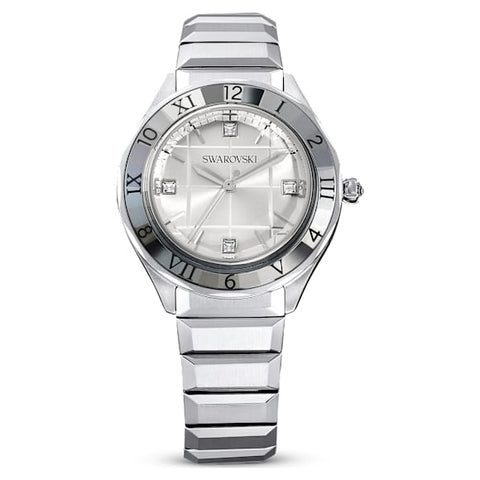 This mesmerizing watch is a standout example of industrial chic. Showcasing our master cutting, the 37 mm case in stainless steel has been expertly faceted, and matched with a bracelet of similar style. The seamless colorway includes a silvery bezel, a sunray silvery dial with a grid patterned effect, and crystals for index markers completed with a single stone in...