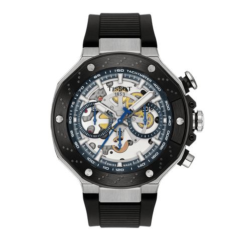 To celebrate over two decades of partnership with MotoGP™, the iconic T-Race collection inspired by racing bikes, expands in 2025 with new references, including this exclusive Automatic Valjoux Chronograph skeleton model. This automatic version features a well-known Valjoux A05.951 movement with a power reserve of 68 hours - a true reflection of the mechanical innovation that defines MotoGP, where each...