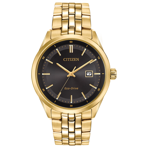 A time-honored watch with clean lines and simple accents, this watch will never go out of style. Featured here in gold-tone stainless steel with black dial, gold-tone accents, sapphire crystal and date. Featuring our Eco-Drive technology – powered by light, any light. Never needs a battery. Caliber number E111.