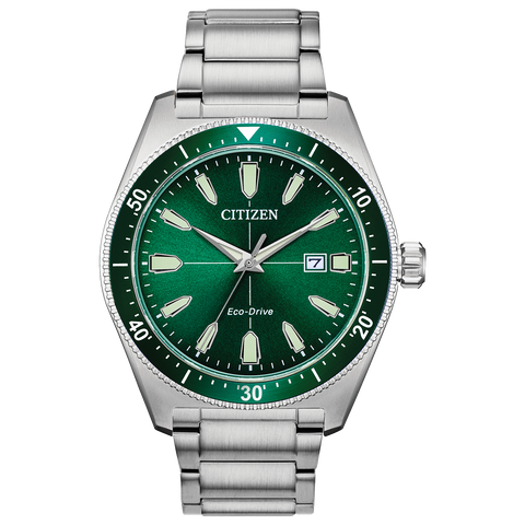 Nothing says classic better than a vintage throwback, and the redesigned Citizen Vintage Brycen Sport timepiece is just that, with distinguished features sure to stand out on your wrist. This stylish watch in a stainless steel case with pine green dial and bezel, stainless steel bracelet and date. Featuring our Eco-Drive technology – powered by light, any light. Never needs...