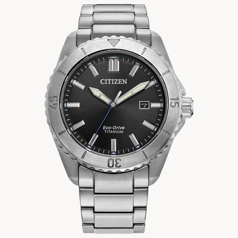 Take action and show your inner drive with the sporty styling of the Brycen, the latest addition to the Weekender collection. Featuring a silver-tone Super Titanium™ case with a brushed finish, the 41mm timepiece is durable in form and function with its matching bi-directional rotating bezel and triple-link bracelet. On the dial, a sunray black texture serves as the backdrop...