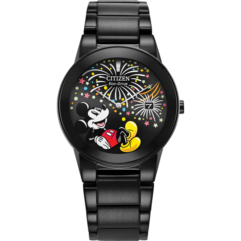 All you need is a little bit of magic according to Mickey, and the Mickey Fiesta unisex styled watch from Citizen’s Disney Mickey Mouse collection brings all the magic and more. The 2-hand black dial with date features a luminous, vibrant fireworks display over a smiling Mickey enjoying the show. The black stainless steel bracelet has a fold over clasp...