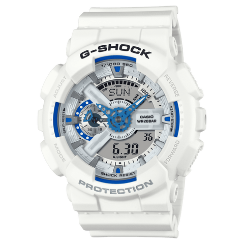 The watch’s blue phosphorescent face glows magically at night, evoking the shimmer of bioluminescent plankton floating in the sea. Paired with a white and blue color scheme, the design beautifully captures the beach’s dynamic transformation from the brilliance of the daylight sun to soft nighttime hues.