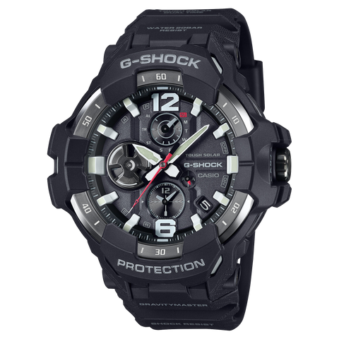 Glancing at your G-SHOCK GRAVITYMASTER pilot watch, you see you left your departure city an hour ago, and the dual time indicates your arrival city is five hours ahead--plenty of time to work through your next maneuver. The large numerals “6” and “12” and the 3-D indices on the face of the G-SHOCK GRB300-1A pilot watch were designed for quick...