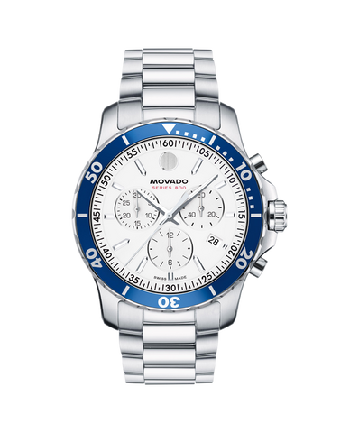The Series 800 Chronograph is a modern take on a timeless sport-inspired silhouette. This 42mm chronograph watch features a white lacquer dial and a blue aluminum bezel.