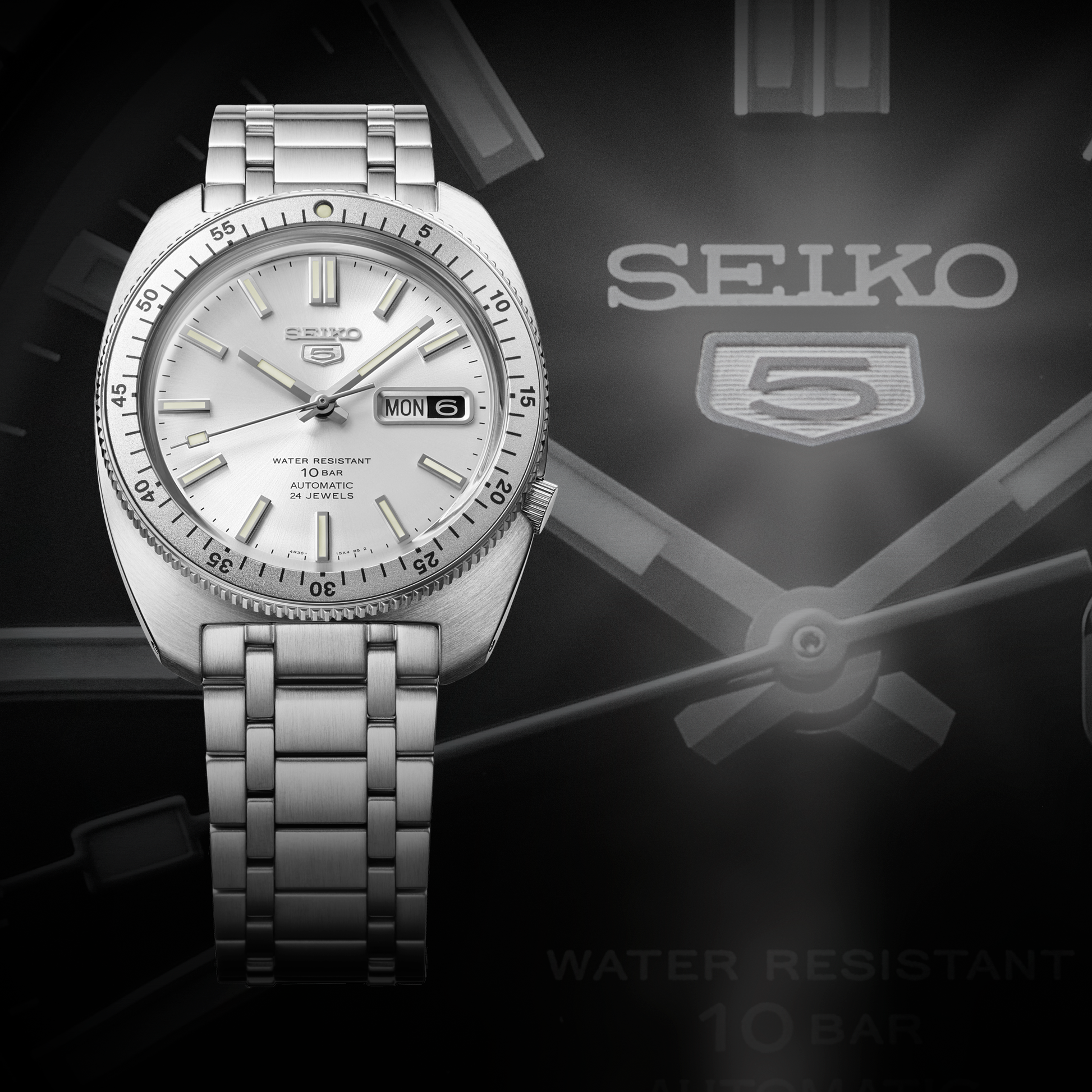 Seiko 5 Sports Heritage Design Recreation Limited Edition. Released in 1968, the first Series of Seiko 5 Sports, now iconic to Seiko fans, is reimagined in a highly collectible Limited Edition, replicating the size and form of the original with updated specifications. Available only in a controlled production run of 9,999, with the serial number engraved on each vintage-style caseback,...