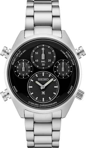 Prospex Speedtimer 1/100 Second Solar Chronograph. Designed for those who treat life as the ultimate adventure, Seiko Prospex keeps moving forward, meeting every challenge with technological excellence and winning design. Featuring the new solar chronograph 8A50 movement, this exceptional watch further advances the high-intensity collection with inspiration from Seiko's - and the world’s - first analog quartz chronograph, which featured...