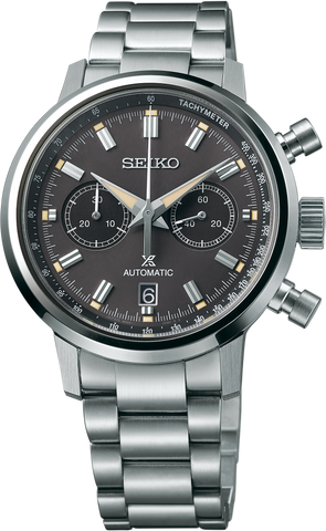 Prospex Speedtimer Mechanical Chronograph. Designed for those who treat life as the ultimate adventure, the Seiko Prospex line meets every challenge with technological excellence and style. Celebrating Seiko's first precision chronographs, developed for international sporting competitions in 1964, as well as its 1969 introduction of the world's first automatic chronograph, this exceptional watch provides chronograph measurement of up to 30...