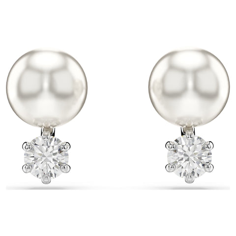 Matrix stud earrings Crystal pearl, Round cut, White, Rhodium plated 5694225