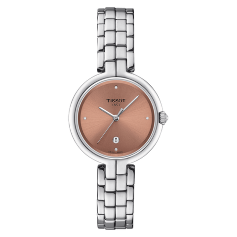 The Tissot Flamingo has a contemporary jewellery look combined with Swiss quality, the slim strap or bracelet true to its flamingo-inspired name expresses undiluted femininity. A timeless watch that will sit well on the wrist whether it be with casual wear or for a formal occasion.